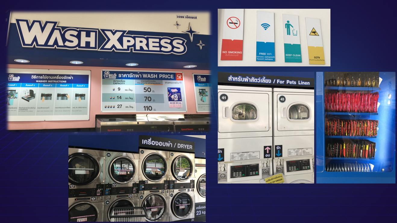 ข้อมูลที่ไปสำรวจและลองใช้บริการในร้านเครื่องซักผ้า 1 ใน 5 Brands แถวบ้าน ในบริเวณดังกล่าว มีสิ่งอำนวยความสะดวกและการให้บริการสรุปได้ประมาณนี้