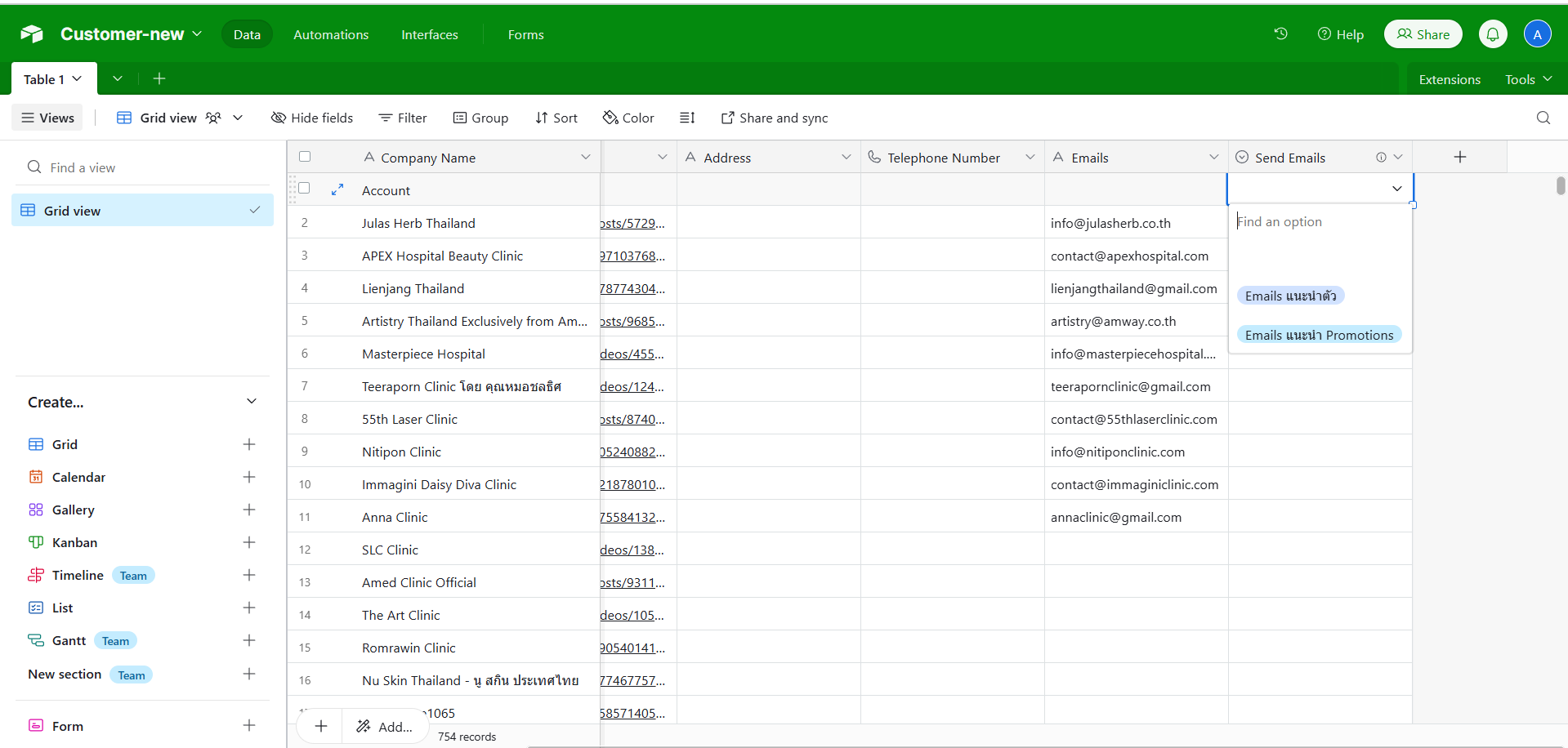 Airtable ช่วยทำรายชื่อลูกค้าให้ส่ง Emails ได้ง่ายขึ้น