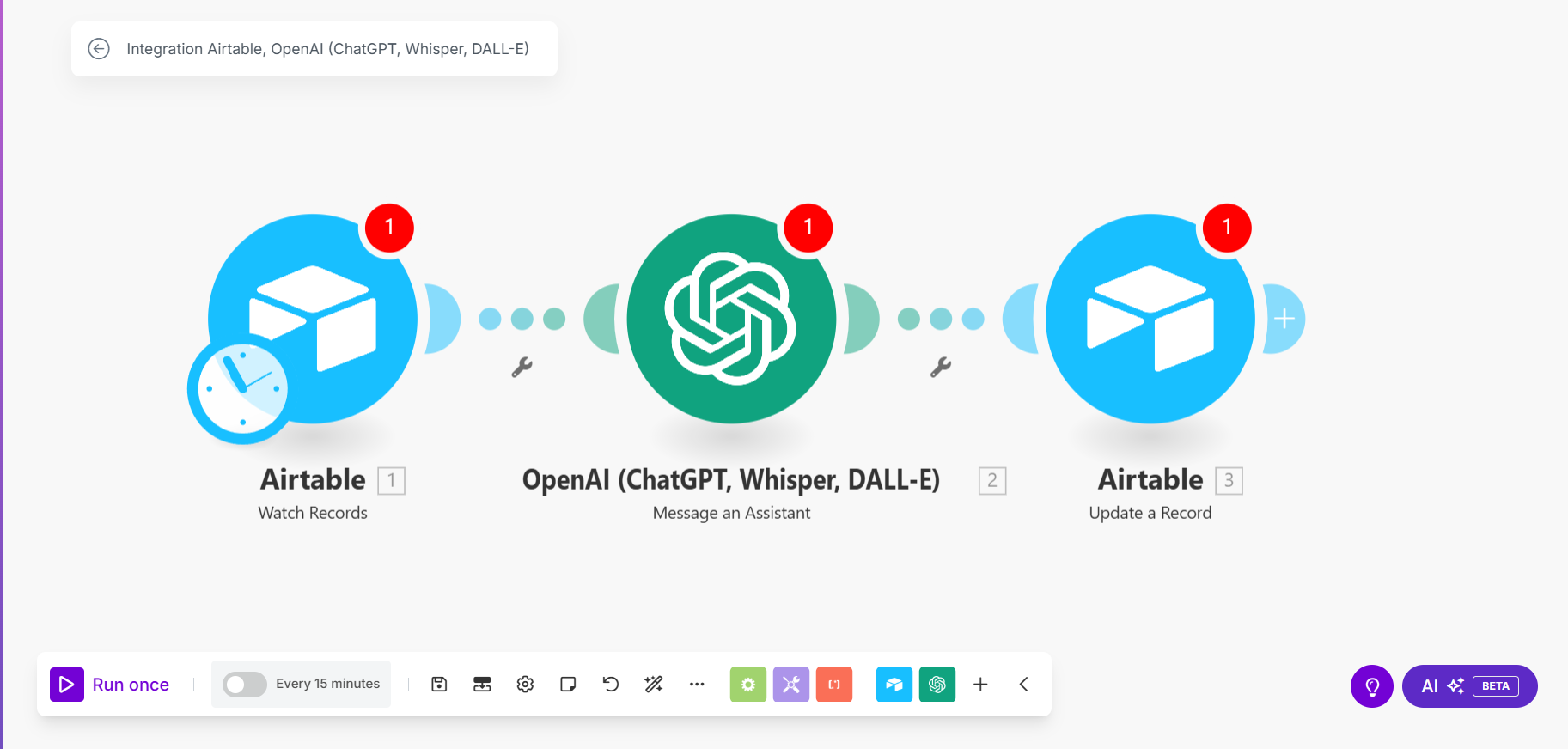 เมื่อเราเห็น Flows ในการหาลูกค้าใหม่ และ การใช้ Chat GPT รวมถึงการนำรายชื่อลูกค้าใหม่ มาไว้ที่ Airtable การออกแบบ Automations ด้วย Make.com หรือ N8N ก็จะทำให้ช่วยลดขั้นตอนที่เกิดขึ้น โดยในแต่ละวันเราคัดกรองรายชื่อลูกค้าที่ไม่ซ้ำกับครั้งที่แล้วใส่ข้อมูลเข้าไปใหม่ แล้วก็กด Run ก็จะทำงานให้เราแบบ Automations แล้ว