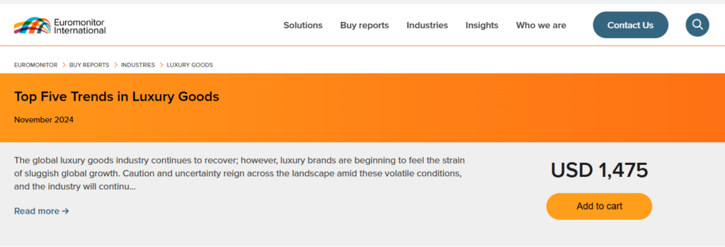 รายงาน “Top Five Trends in Luxury Goods” โดย Euromonitor International ปีล่าสุด 2024 สามารถซื้อได้ที่ Link นี้